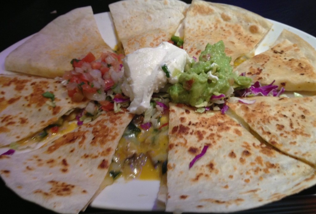 Cut it into wedges using a pizza cutter and serve them warm with salsa, guacamole and sour cream.Enjoy!