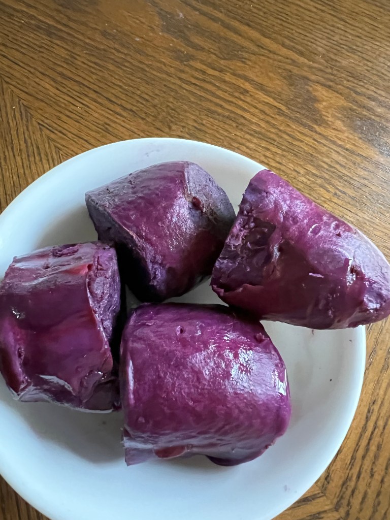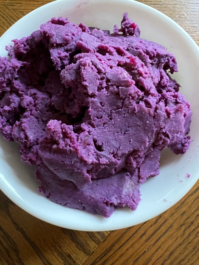 Ube is a purple yam which has a vibrant purple flesh. This root vegetable is a native of philippines and has a sweet, nutty flavor which is mostly used in desserts. I used these yams to make a creamy purple sauce called ube sauce which has a beautiful purple color.
