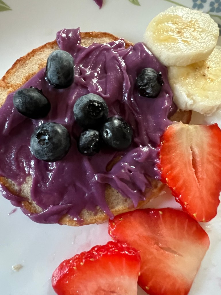 - Drizzle generously with some ube sauce over these warm ube pancakes and top it with some fruits of your choice.