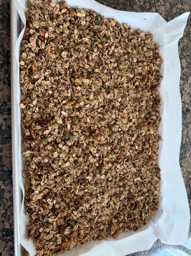 Moreover, one of the best aspects of this granola recipe is its versatility. You can easily customize it by adding various ingredients and flavors according to your preferences. Consider tossing in sliced almonds for an extra nutty flavor, or raisins and cranberries for a touch of sweetness and chewiness.You might even incorporate some nut butters to create a richer taste. Peanut butter, almond butter, or even sunflower seed butter can enhance the healthy fats while providing a unique twist.